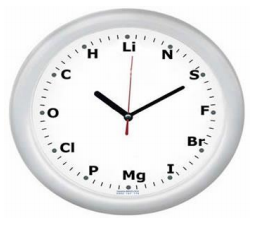 Um professor decidiu decorar seu laboratório com um “relógio de Química” no qual, no lugar das horas, estivessem alguns elementos, dispostos de acordo com seus números atômicos como mostra a figura abaixo.