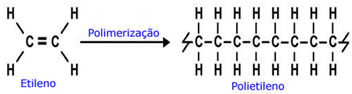 O etileno é o monômero e, quando passa pela reação de polimerização, que nada mais é do que a quebra da insaturação, se torna um mero, assim vários meros ligados formam o polímero.