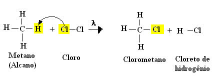 Os alcanos são hidrocarbonetos de baixa reatividade, pois as ligações formadoras desses compostos são relativamente fortes. A forma encontrada para que ocorram reações com esses compostos é a substituição de átomos de hidrogênio por outros grupos funcionais.