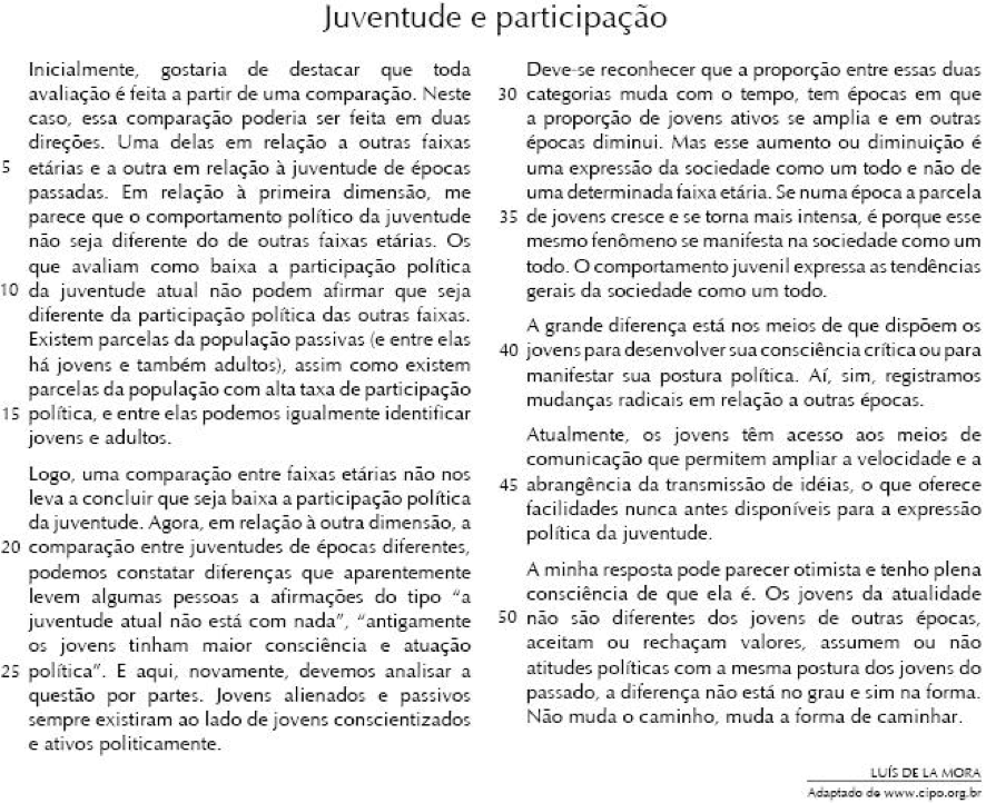 c) “ou para manifestar suapostura política” (l. 40-41)