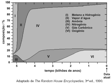 1. (ENEM) As áreas numeradas no gráfico mostram a composição em volume, aproximada, dos gases na atmosfera terrestre, desde a sua formação até os dias atuais.
