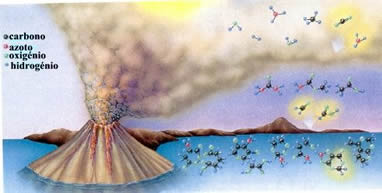A forte radiação e o calor intenso podem ter feito as primeiras moléculas reagirem quimicamente dando origem a moléculas mais complexas. A matéria orgânica acumulada podia se agregar e formar sistemas isolados, os chamados coacervatos (aglomerados de proteínas que se formam espontaneamente em soluções aquosas com certo grau de acidez e salinidade).