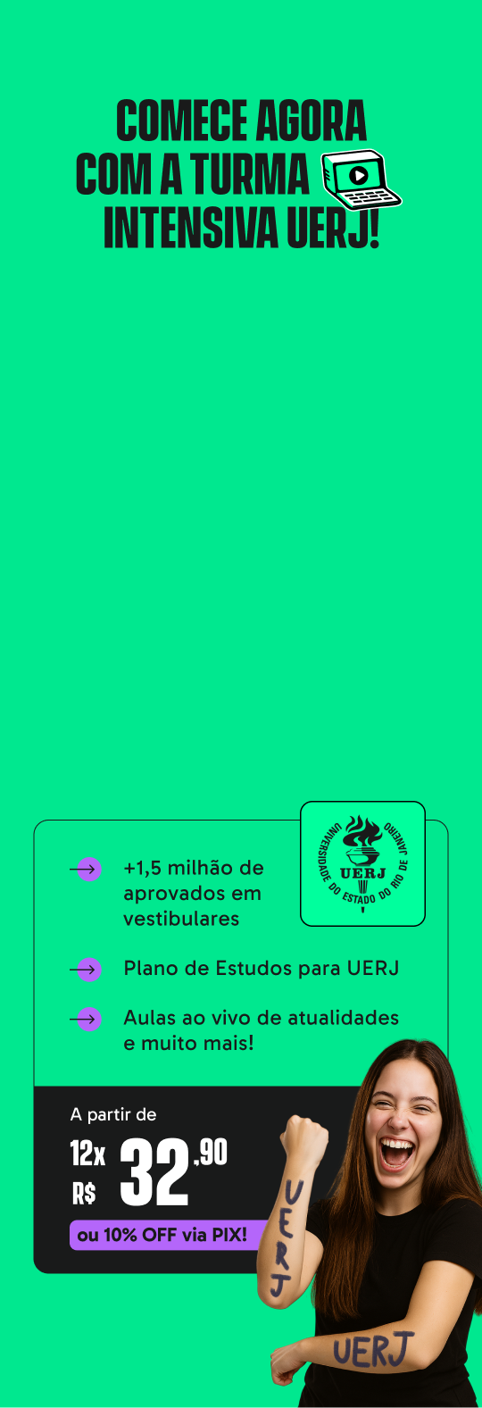 A Turma Intensiva está começando e quem entra agora já acessa aulas, simulados, redações e uma série de benefícios especiais para você entender de vez como encarar o vestibular da UERJ. Escolha o plano ideal para você.